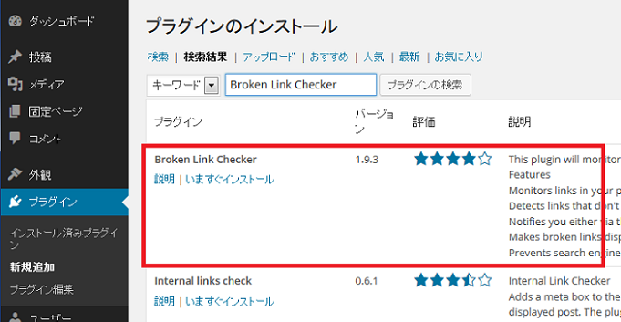 検索結果一覧から「Broken Link Checker」のところの今すぐインストールをクリックします。